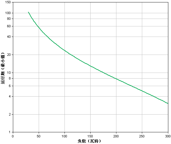 曲線擬合測得的運行時間數(shù)據(jù)。 所有測量都是在使用充滿電的新電池、在典型環(huán)境條件下且沒有電力輸入和電阻負載輸出的情況下開展的。 |