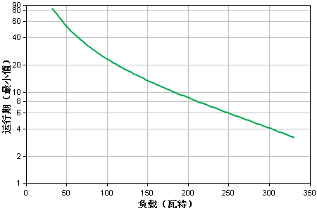曲線擬合測得的運行時間數(shù)據(jù)。 所有測量都是在使用充滿電的新電池、在典型環(huán)境條件下且沒有電力輸入和電阻負載輸出的情況下開展的。 |