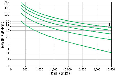 曲線擬合測得的運行時間數(shù)據(jù)。 所有測量都是在使用充滿電的新電池、在典型環(huán)境條件下且沒有電力輸入和電阻負(fù)載輸出的情況下開展的。 |