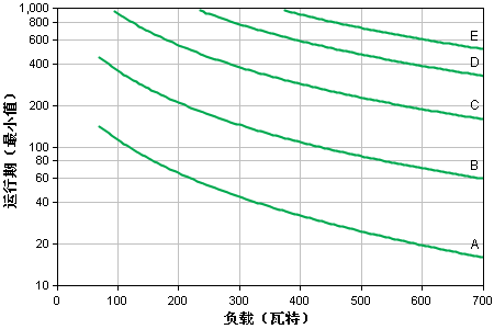 曲線擬合測(cè)得的運(yùn)行時(shí)間數(shù)據(jù)。 所有測(cè)量都是在使用充滿電的新電池、在典型環(huán)境條件下且沒有電力輸入和電阻負(fù)載輸出的情況下開展的。 |