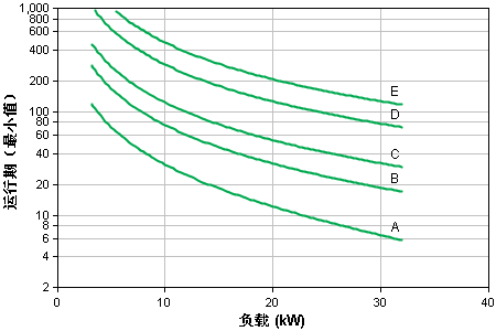 估計的運行時間是在典型的環(huán)境條件下且沒有電力輸入并采用 PF = 0.8 的均衡輸出情況下,基于電池供應商的數(shù)據(jù)得出的。 |
