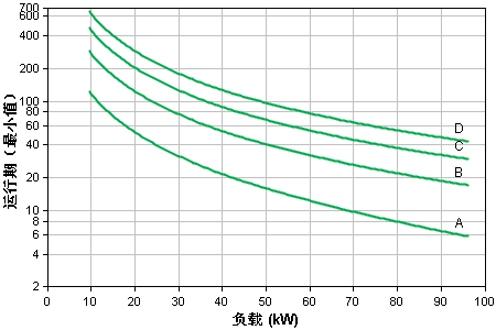 估計(jì)的運(yùn)行時(shí)間是在典型的環(huán)境條件下且沒有電力輸入并采用 PF = 0.8 的均衡輸出情況下,基于電池供應(yīng)商的數(shù)據(jù)得出的。 |