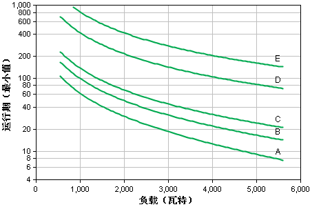 曲線擬合測得的運行時間數(shù)據(jù)。 所有測量都是在使用充滿電的新電池、在典型環(huán)境條件下且沒有電力輸入和電阻負載輸出的情況下開展的。 |